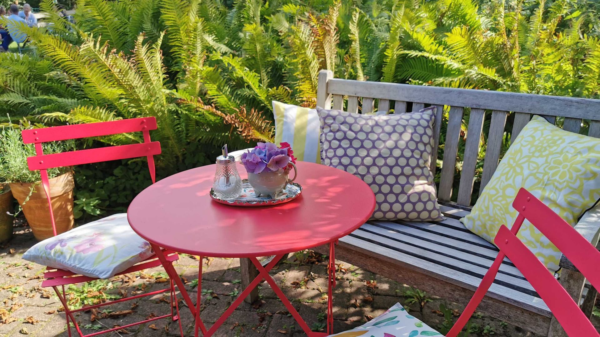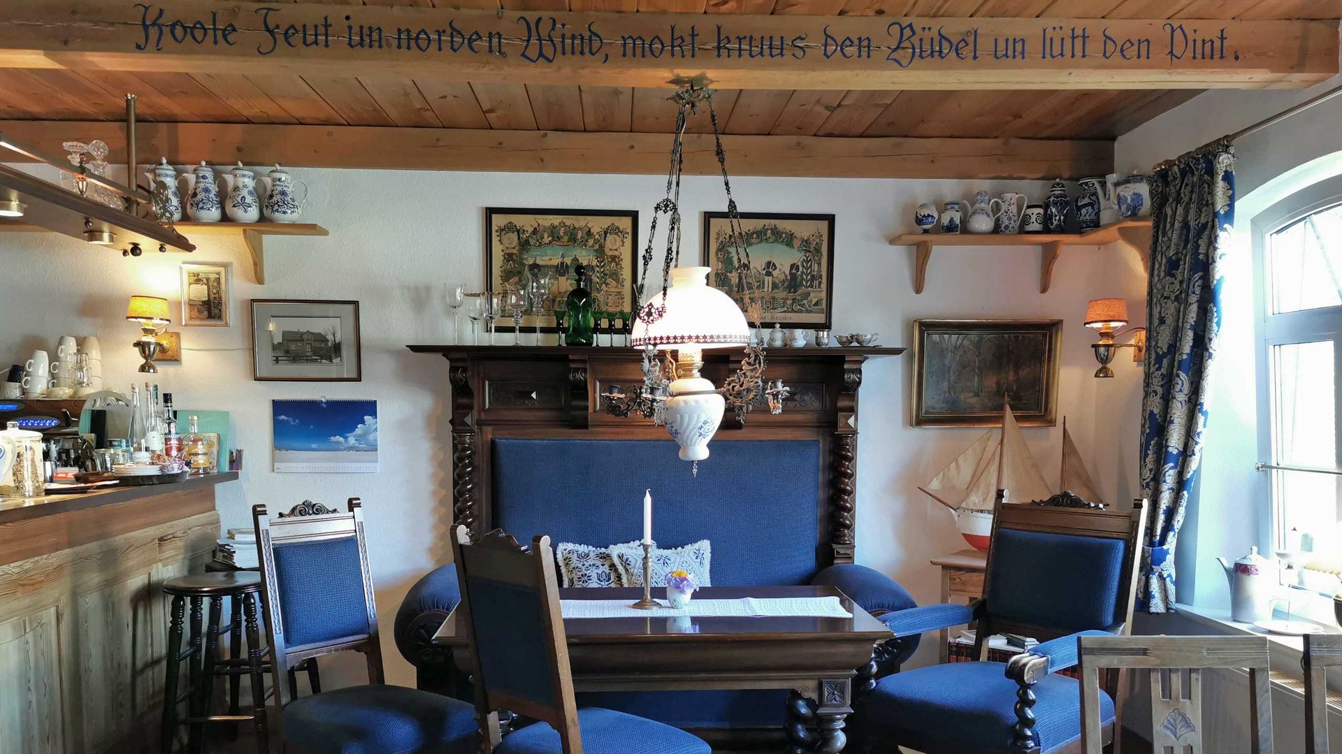 Im gemütlichen, mit antiken Möbeln eingerichteten Café Klön-Stuuv können die Gäste hausgebackene Torten und Kuchen, Kaffee- und Teespezialitäten, herzhafte Kleinigkeiten, Wein, Bier oder einem guten Obstbrand genießen.