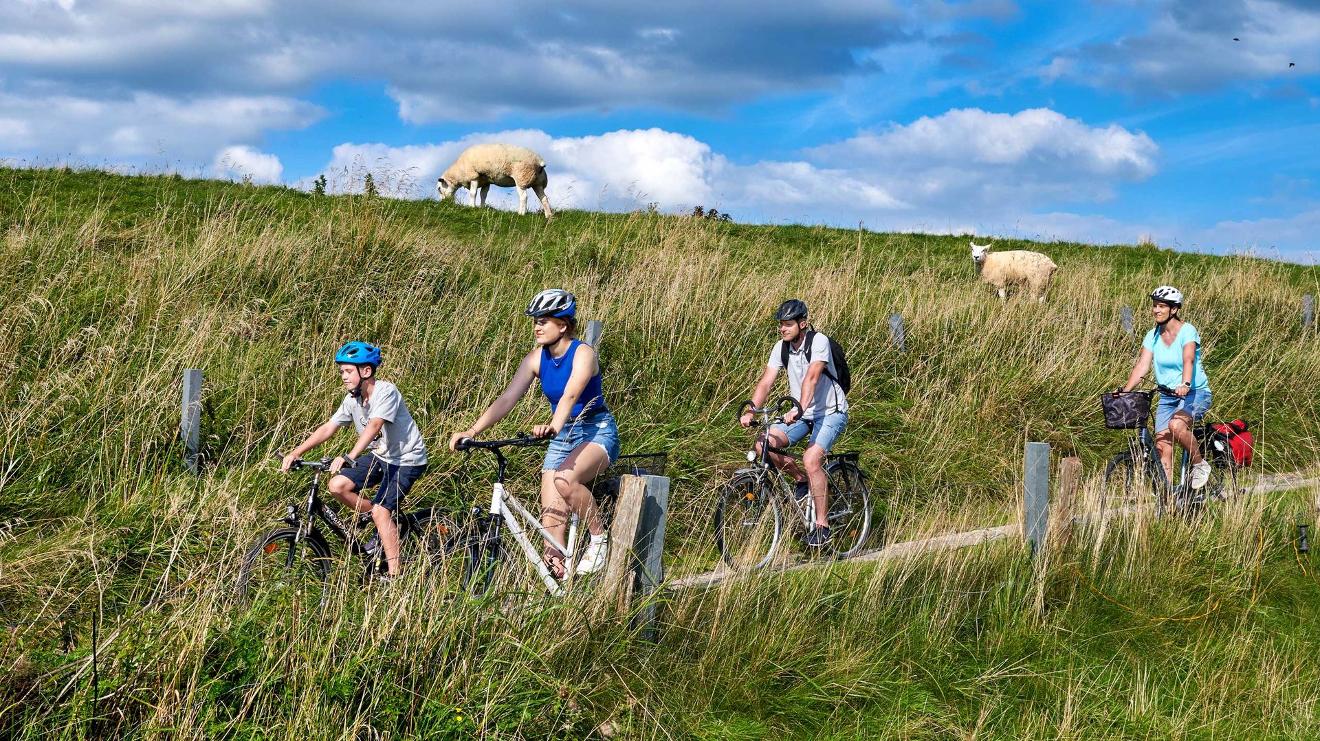 Entdecken Sie auf dieser Radroute den längsten Fluss Schleswig-Holsteins, die Eider. Wenn Sie von Lunden aus Richtung Osten fahren, erreichen Sie den Fluss an der Schleuse Nordfeld. Hier befindet sich das Übergangsgebiet zwischen salz- und süßwasserbeeinflussten Flussmarschen und Flusswatten.