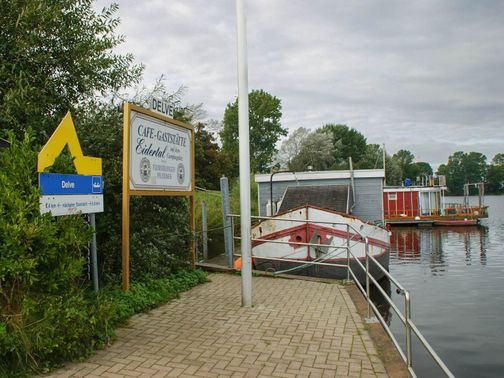 Die Kanueinsetzstelle Delve mit ihren Rastmöglichkeiten ist denkbar günstig gelegen: Direkt am Imbiss KanuPoint.