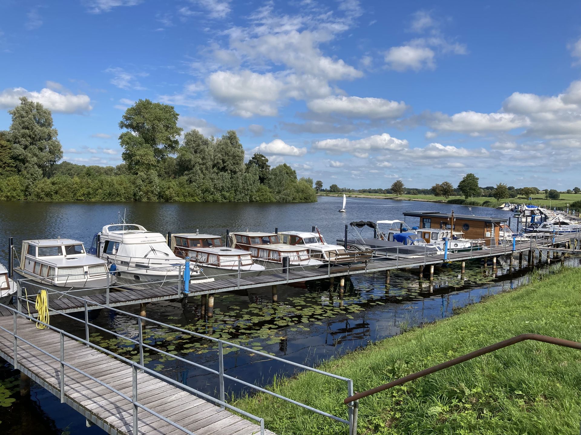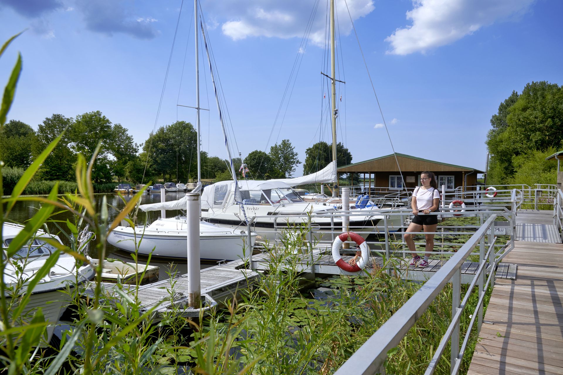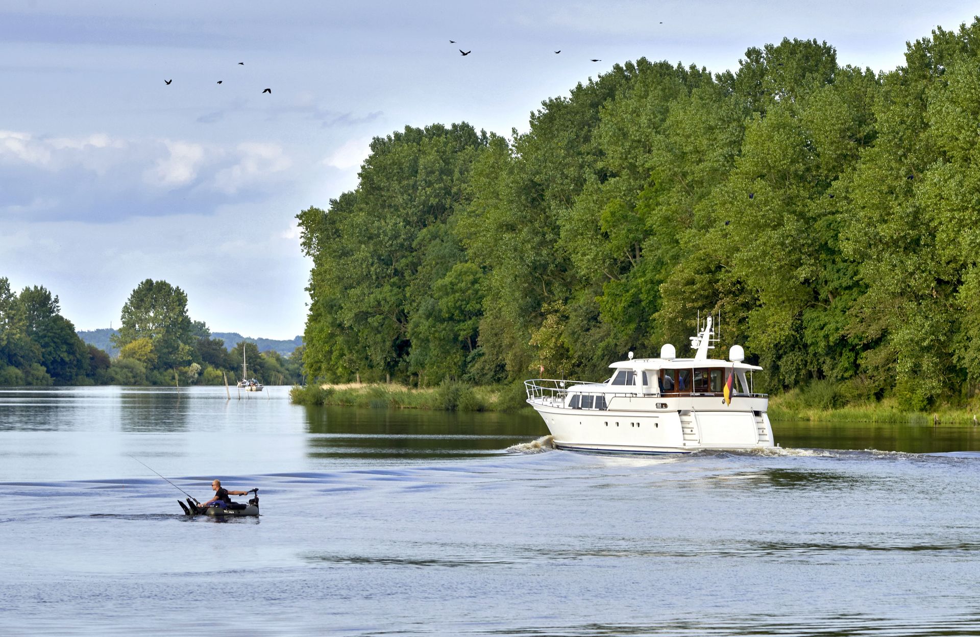 Wer sich treiben lässt, entdeckt eine Landschaft, die sich immer wieder verändert: mal wild und verwunschen, mal weit und offen. Kleine Marinas entlang der Strecke laden zum Anlegen ein, während sich die Treene für gemütliche Abstecher mit dem Kleinboot eignet. Und wer weiterfährt, gelangt vom Nord-Ostsee-Kanal durch die Eider bis zur Nordsee – eine Route, die Tradition und Abenteuer verbindet, wie bereits Jules Verne wusste.