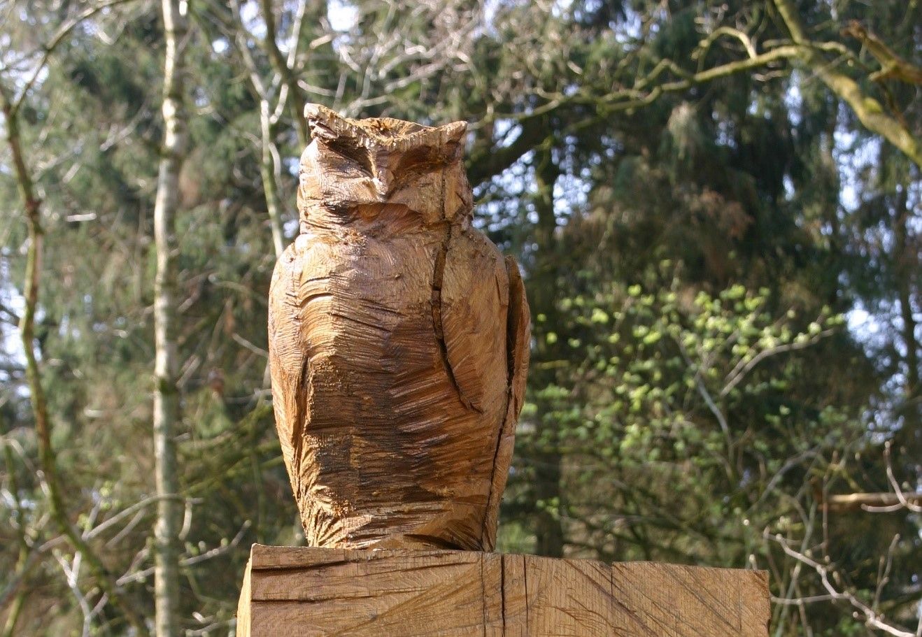 Der Weg führt dich nun entlang eines Wohngebiets, wo du immer wieder auf geschnitzte Eulenskulpturen triffst. Nachdem du die Straße "Am Buchenhain" gequert hast, biegst du nach etwa 450 Metern auf der Höhe eines Knicks rechts in einen Fußweg ein und kommst zur Kreisstraße K34. Gehe ein Stück nach rechts und quere dann die Straße, um gegenüber in einen Fußweg einzubiegen. Hier kannst du einen Abstecher zu einer Aussichtsplattform machen. Überquere die Treene und passiere das Freibad sowie den Tennisplatz. Über den Liebesweg erreichst du die Tornschauer Straße. Quere diese und nimm geradeaus den kleinen Fußweg zurück zum Ausgangspunkt.