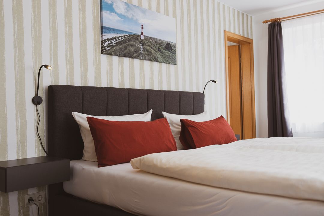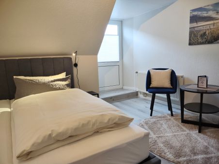 Gemütliche Zimmer und umfangreiche Freizeitmöglichkeiten in der Umgebung, wie Kegeln oder Radtouren zur nahen Nordseeküste und durchs schöne Binnenland.