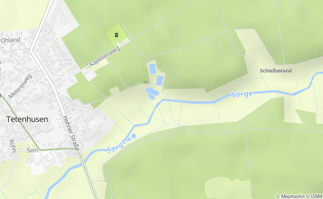 Die Einsetzstelle für Kanus liegt in der Nähe des Tetenhusener Schulwaldes, vorbei den Klärteichen. Die Treppe mit Slip-Fläche befindet sich auf der (stromabwärts) rechten Seite der Sorge und ist erkennbar an der „Gelben Welle“