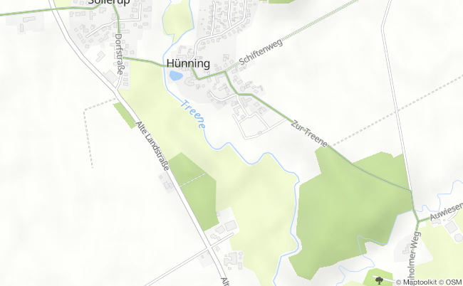Nur wenige hundert Meter südlich der Kanueinsetzstelle Sollerup kommst du an die Ein- und Aussetzstelle Hünning. Der nahegelegene Zeltplatz bietet Imbissmöglichkeiten und Optionen zum Übernachten. Besonders für Gruppen ist diese Einsetzstelle gut geeignet. Die sehr kurvenreiche Treene bietet um Hünning herum bei einer gewissen Strömung viel Fahrspaß.