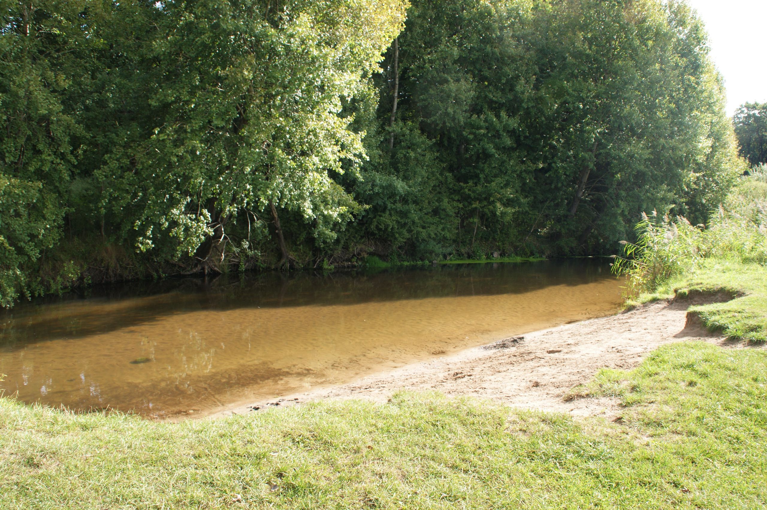Naturnahe Rastmöglichkeit an der Treene, stromab rechts. Keine Einsetzmöglichkeiten von Land.