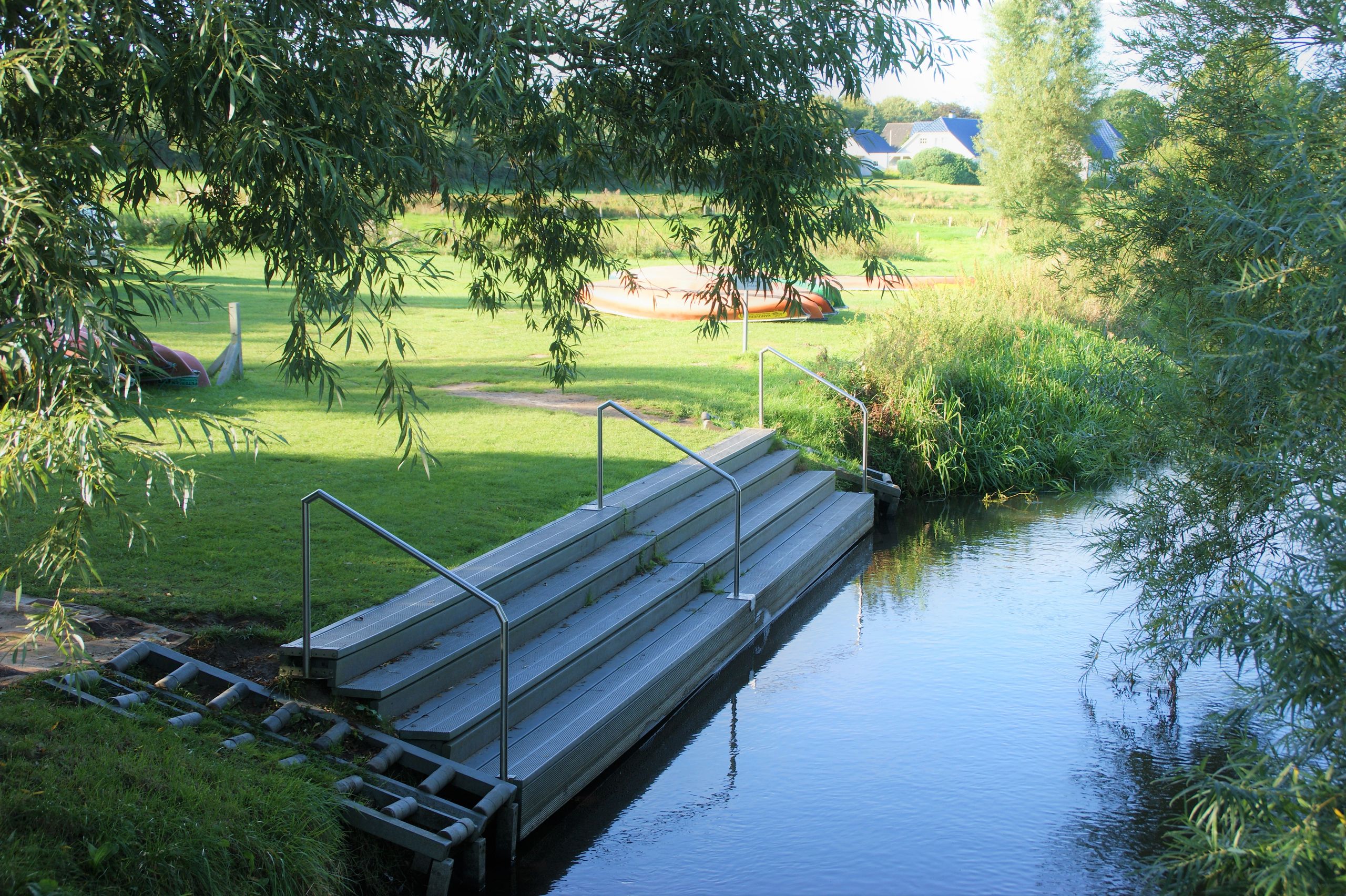 Die Kanueinsetzstelle direkt an der Brücke zwischen Langstedt und Eggebek ist die erste Einsetzstelle an der Treene stromab gesehen. Ab hier kann man mit dem eigenen oder einem gemieteten Kanu von einem der Kanuverleiher aus der Region, die ihre Kanus ab hier einsetzen, Ein- oder Mehrtagestouren durch die Flusslandschaft Eider-Treene-Sorge starten.