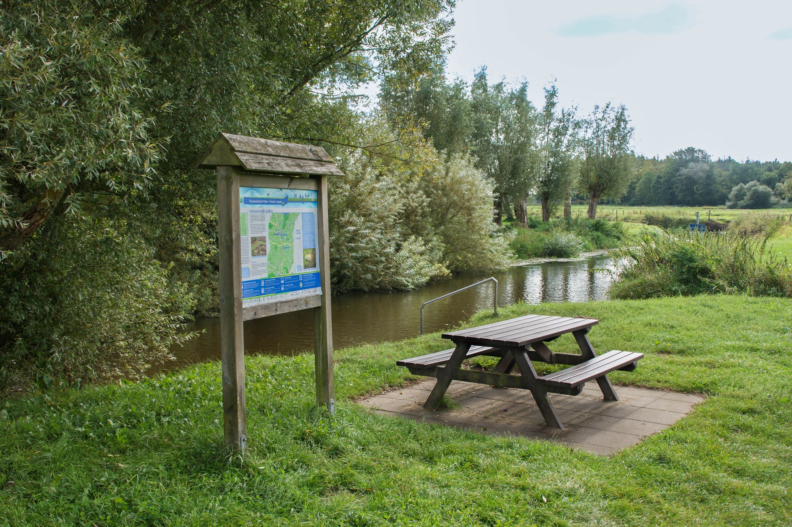 Diese schöne Kanueinsetzstelle mit Rastmöglichkeiten liegt nur wenige Meter unterhalb der Solleruper Straßenbrücke.