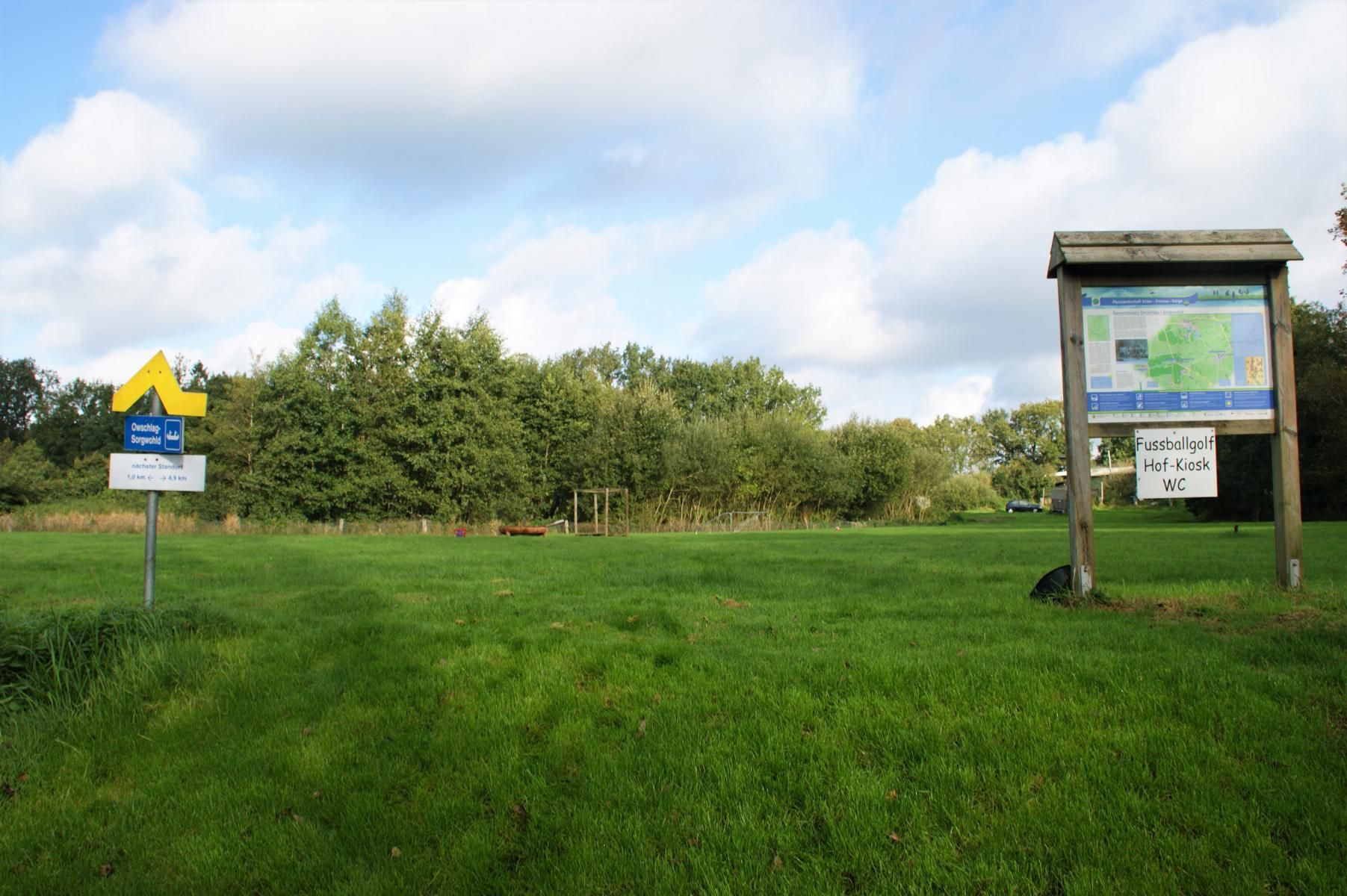 Von Alt Duvenstedt / Owschlag kommen, geht es rund fünf Kilometer durch die Wiesen, bis man das Grundstück der Famile Pahl in Sorgwohld erreicht. Zu erkennen ist es an der Markierung durch die Gelbe Welle am massiven Steg. Hier kann Fußballgolf gespielt werden und für die Pause gibt es einen kleinen Kiosk und Toiletten oben auf dem Hof sowie Campingmöglichkeiten auf Nachfrage.
