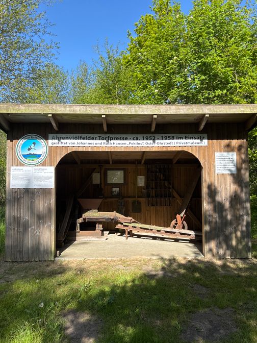 Historische Torfpresse im Ahrenviölfelder Westermoor – heute ein Ort, an dem Natur, Geschichte und Artenvielfalt aufeinandertreffen