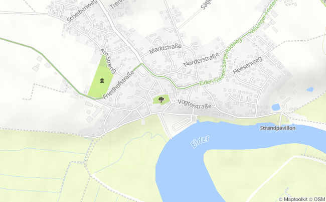 Die St. Katharinen-Kirche an der Eider beeindruckt mit ihrem Rundturm und einer prachtvollen Innenausstattung aus der Spätrenaissance.