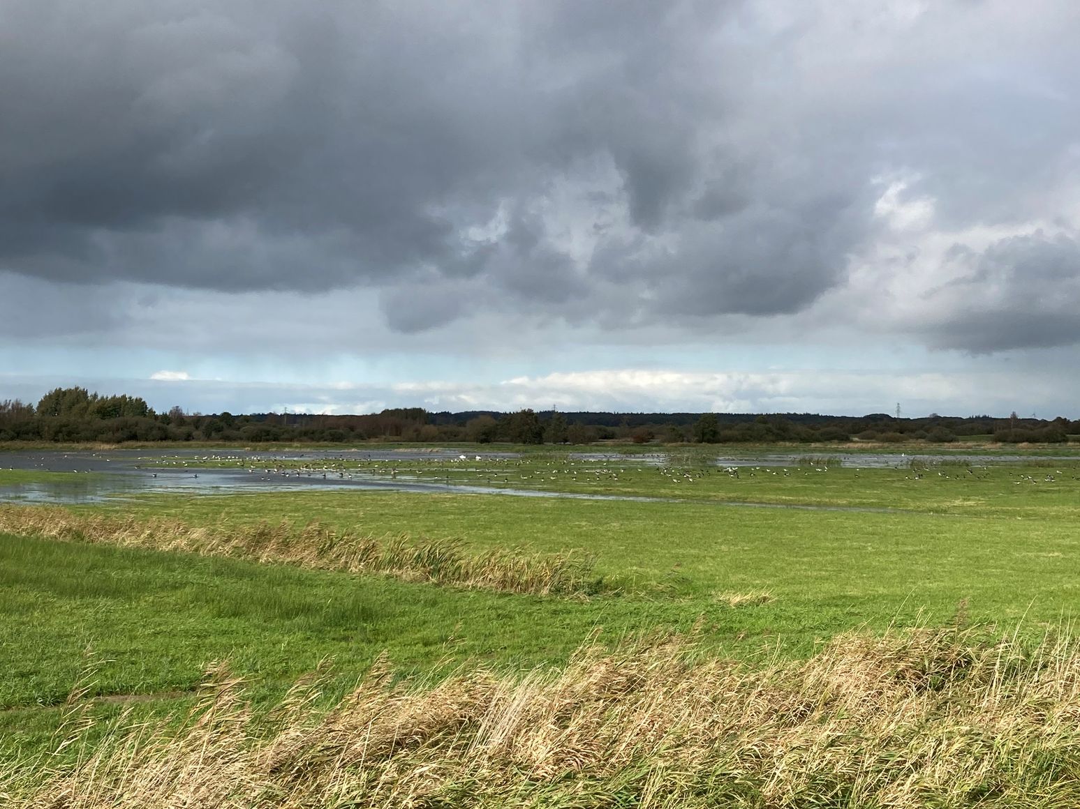 Starte deine Wanderung an der Straße "Hölken" in Richtung Westen (Schild "Hausnummern 5 bis 11"). Du kommst in die weite Niederungslandschaft der Alten Sorge. An einer T-Kreuzung biegst du links ab und wanderst zunächst auf der Südseite des Colsrakmoors. Du passierst eine Informationstafel und biegst dann in einer scharfen Linkskurve rechts in einen Grasweg ein.